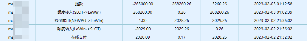 郑老板当日充值两次第一次128元玩了PG老虎机,第二次充值308元转入PT老虎机。单日充值不多,436元。